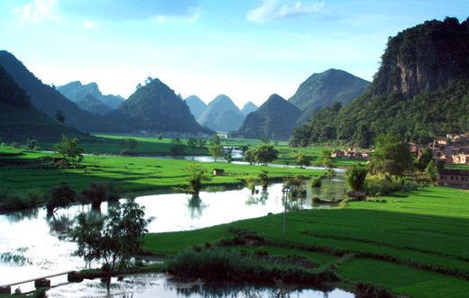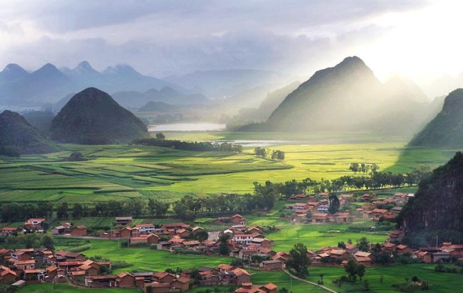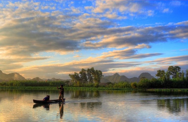坝美,位于文山州广南县,至今不通公路。要想进入坝美村,必须坐小船,穿过一个1公里长的溶洞才能到达。坝美村与世隔绝的地理环境造就了与世无争的鸡犬相闻的古朴风貌,像极了桃花源。这里的风景温婉动人,成为全国摄影爱好者的新宠;这里的壮族风情也让人陶醉。